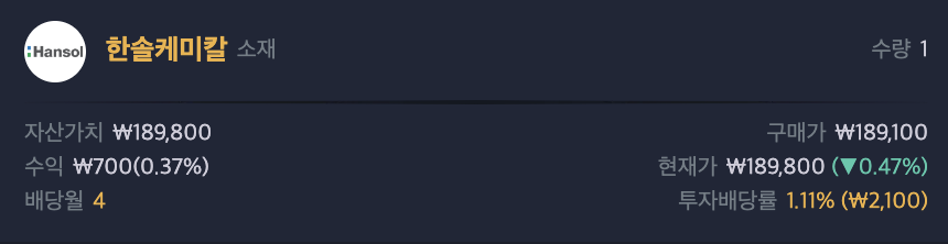 한솔케미칼 비교대상 종목의 배당금 포스팅 입니다.