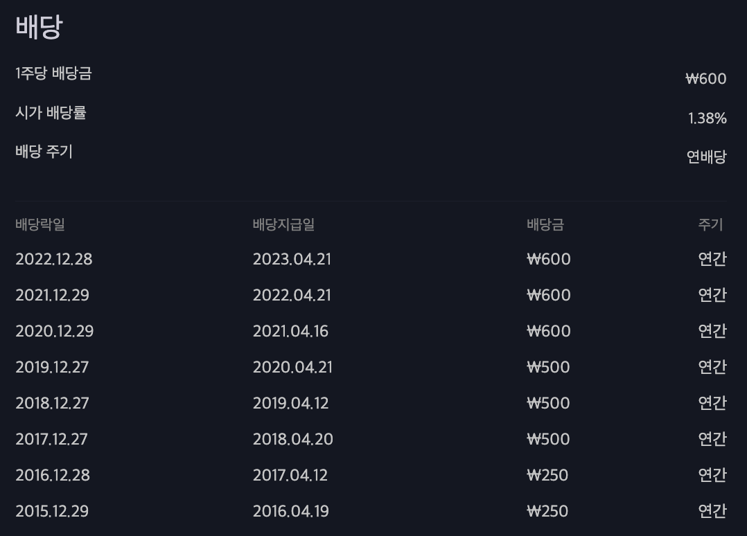 하단의 이미지는 배당금액만 참고하시고 배당기준일은 직접 확인하시는 것이 정확합니다.