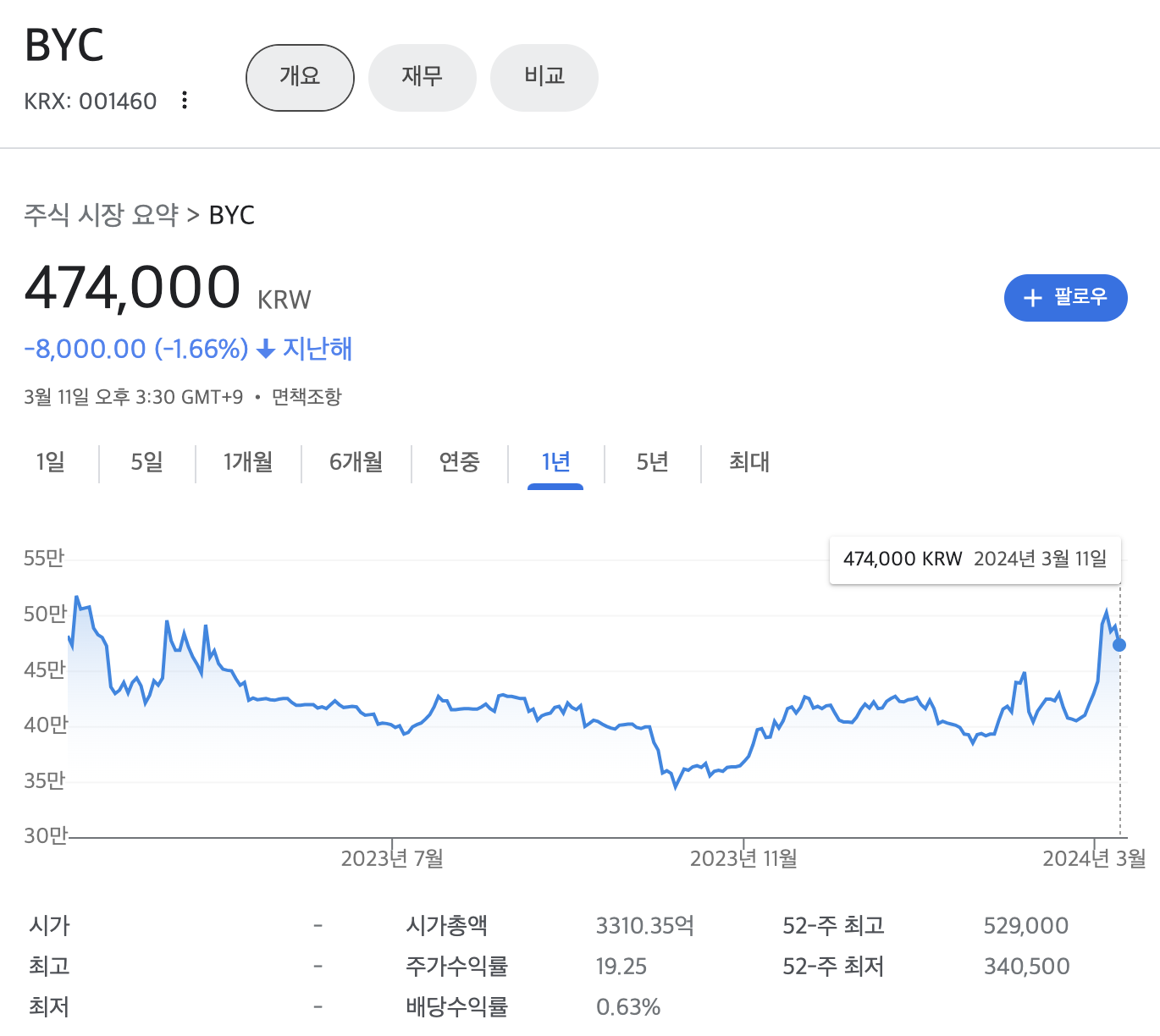 BYC우(001465) 주가 및 뉴스 - Google Finance