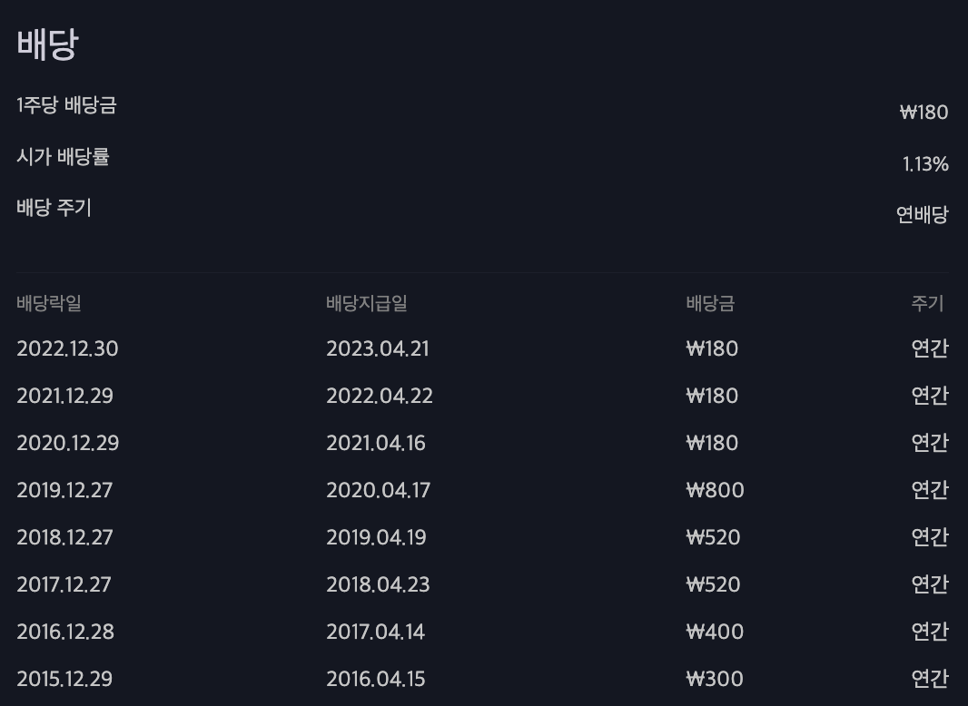 하단의 이미지는 배당금액만 참고하시고 배당기준일은 직접 확인하시는 것이 정확합니다.