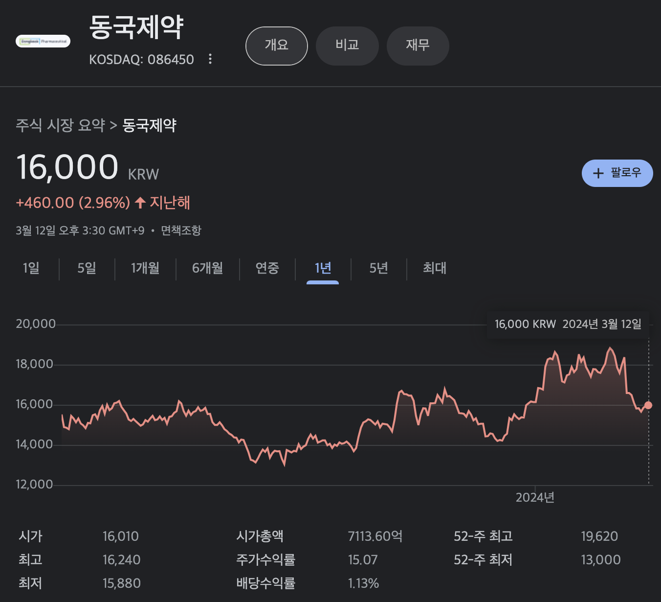 동국제약(086450) 주가 및 뉴스 - Google Finance