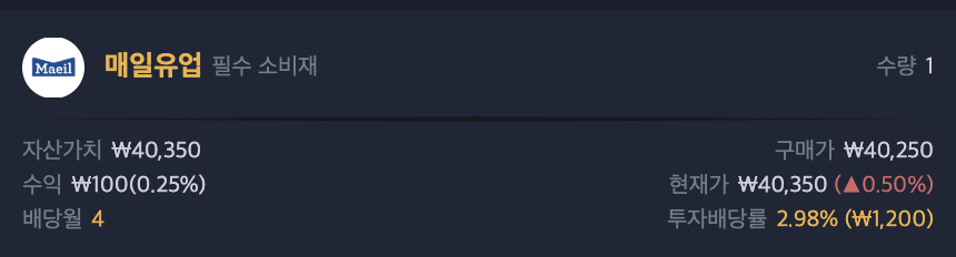 매일유업 비교대상 종목의 배당금 포스팅 입니다.