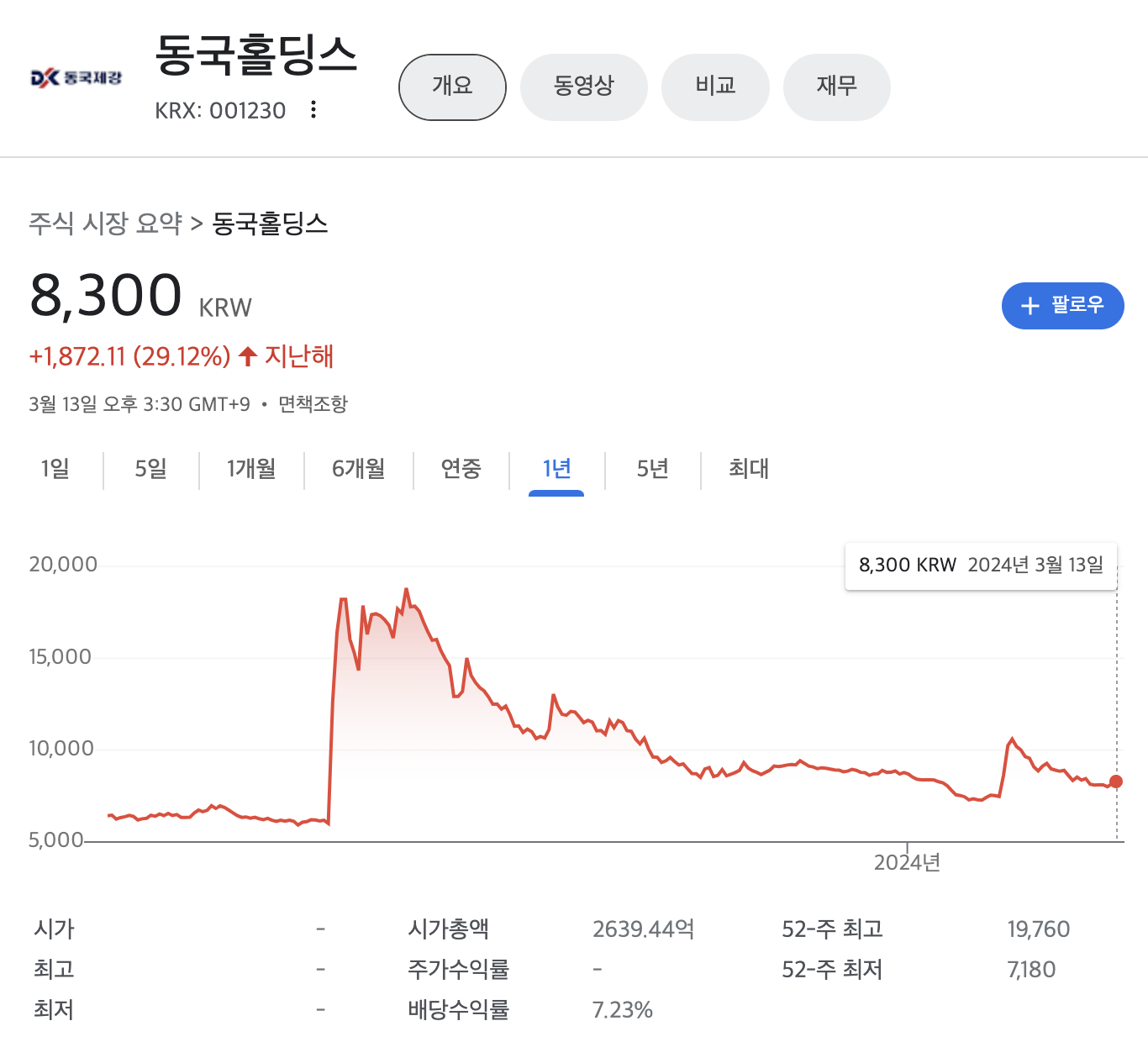 동국홀딩스(001230) 주가 및 뉴스 - Google Finance