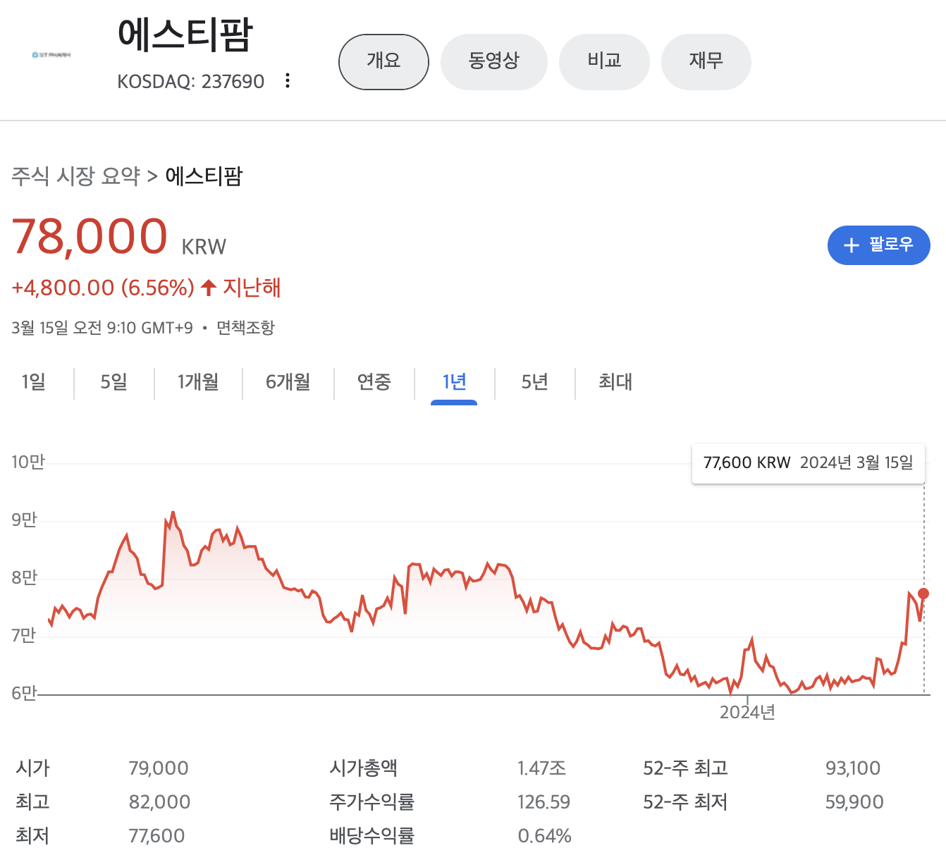 에스티팜 네이버증권, 구글 금융