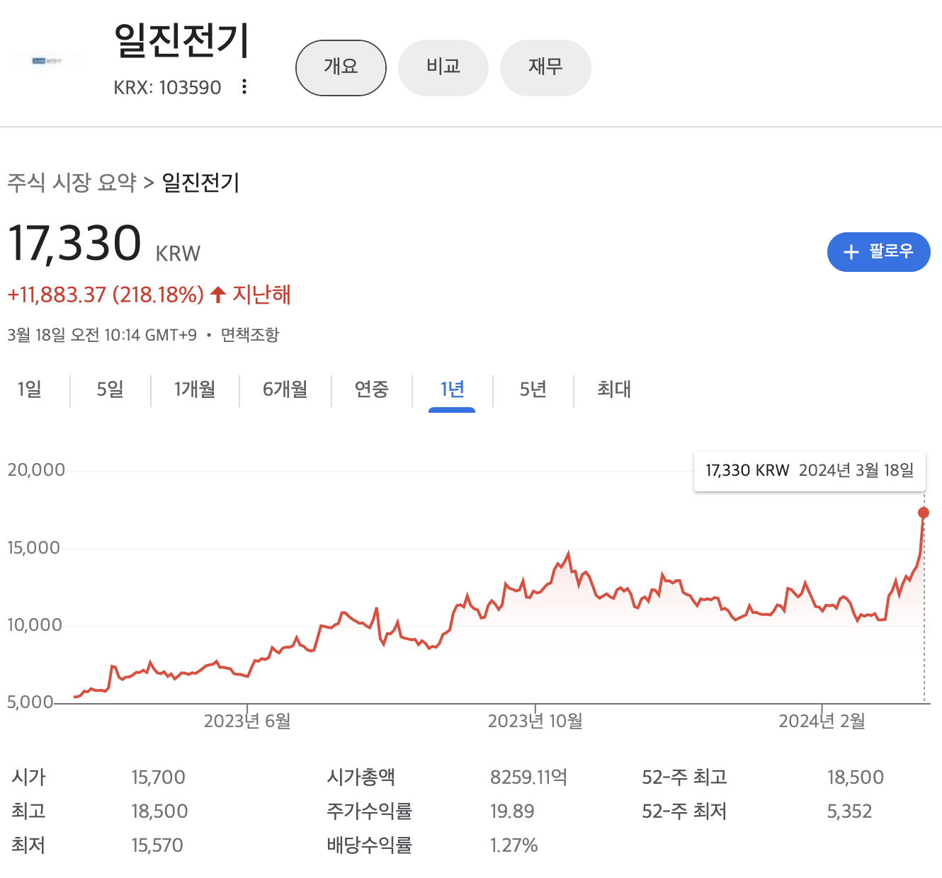 일진전기(103590) 주가 및 뉴스 - Google Finance