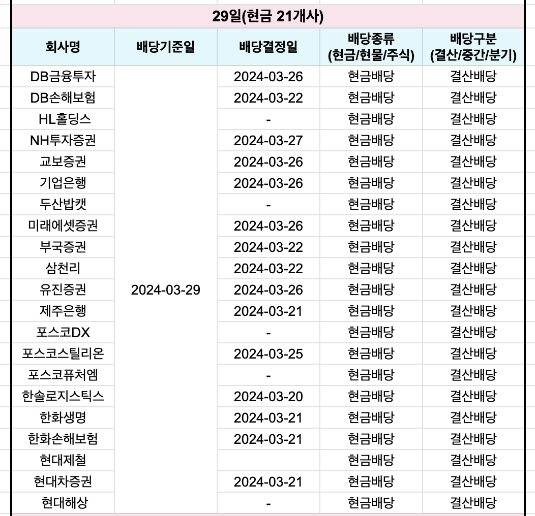 3월 배당기준일이 공시된 기업에 대해 작성해 봅니다.