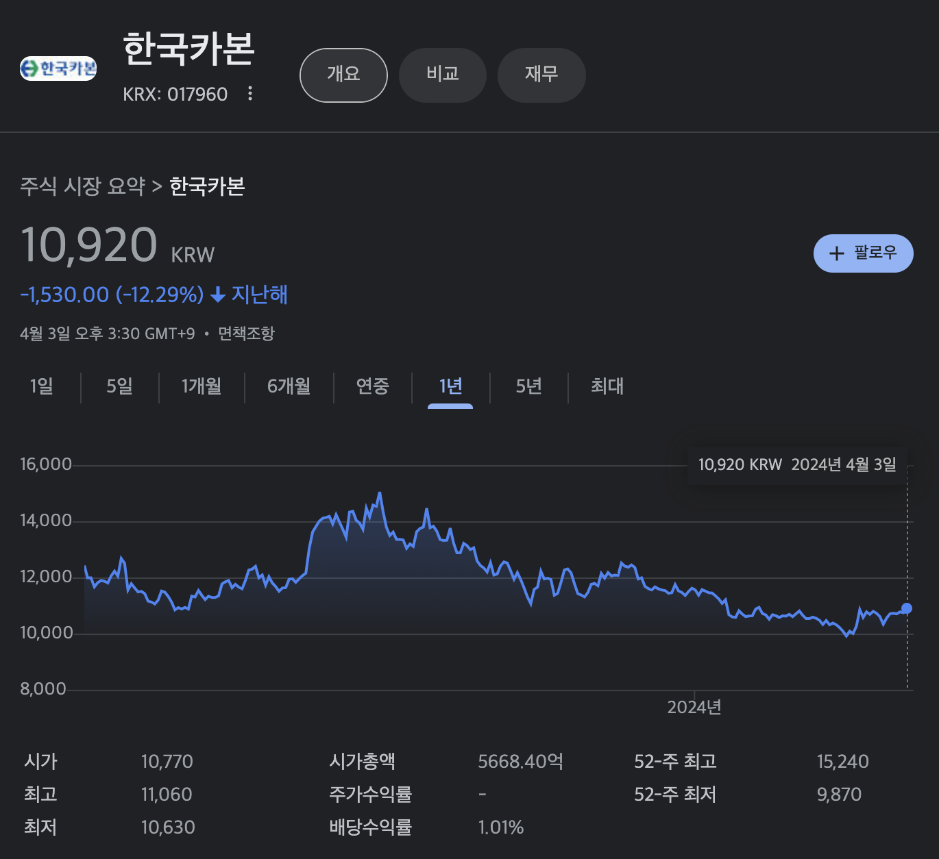 한국카본(017960) 주가 및 뉴스 - Google Finance