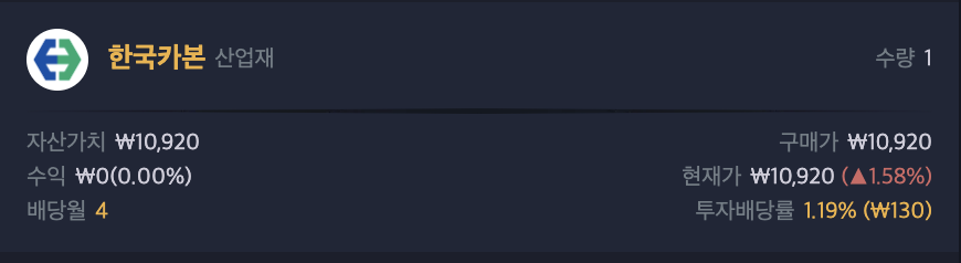 한국카본 업종(자본재) 종목의 배당금 포스팅 입니다.