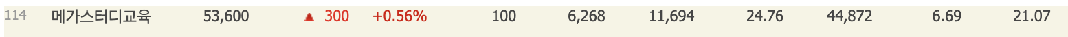 메가스터디교육은 코스닥에 상장되어 있으며 시가총액 114위의 기업입니다.(2024년 4월기준)