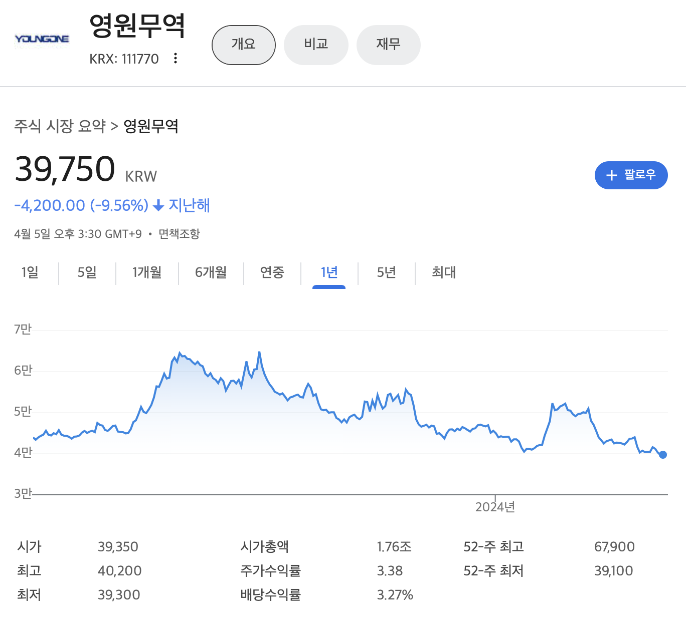 영원무역(111770) 주가 및 뉴스 - Google Finance