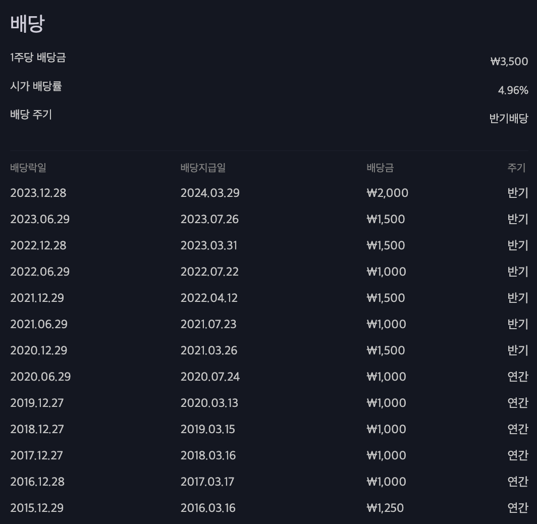 하단의 이미지는 배당금액만 참고하시고 배당기준일은 직접 확인하시는 것이 정확합니다.
