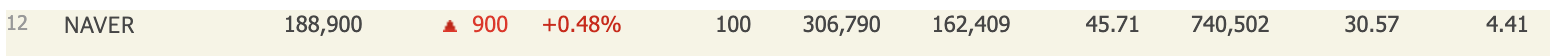 NAVER(네이버)는 코스피에 상장되어 있으며 시가총액 12위에 있는 기업입니다.(2024년 3월기준)