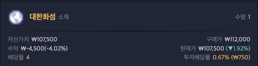 대한화섬 업종(소재) 종목의 배당금 포스팅 입니다.