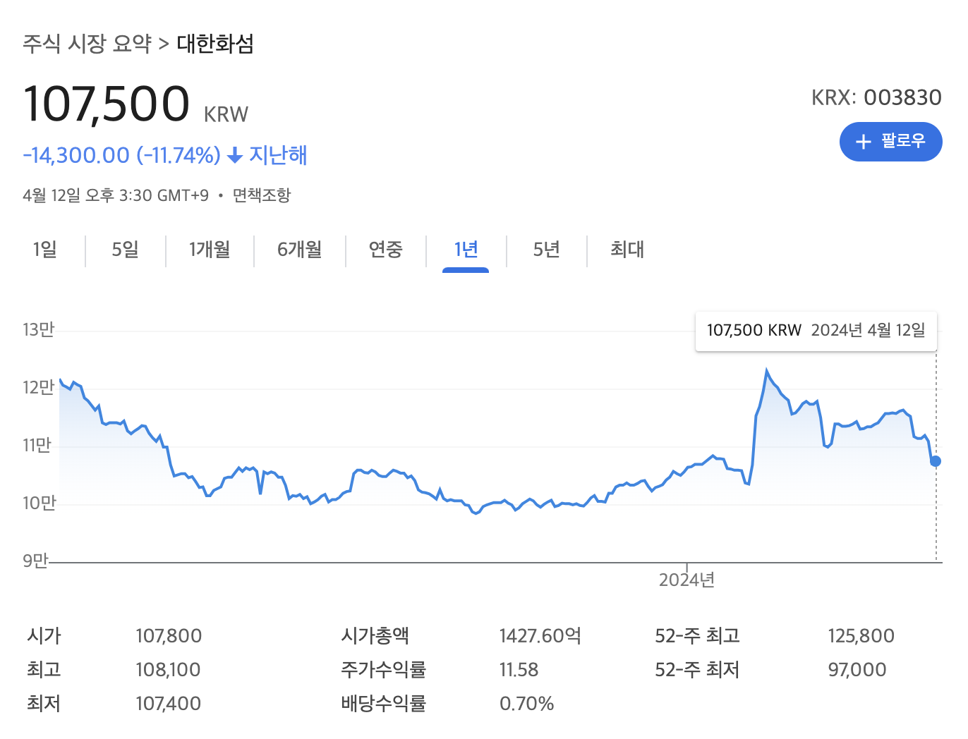 대한화섬(003830) 주가 및 뉴스 - Google Finance