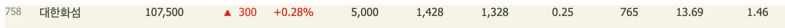 대한화섬은 코스피에 상장되어 있으며 시가총액 758위의 기업입니다.(2024년 4월기준)