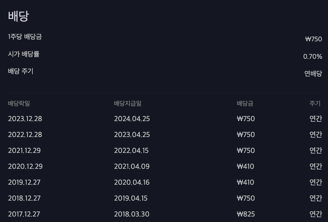 하단의 이미지는 배당금액만 참고하시고 배당기준일은 직접 확인하시는 것이 정확합니다.