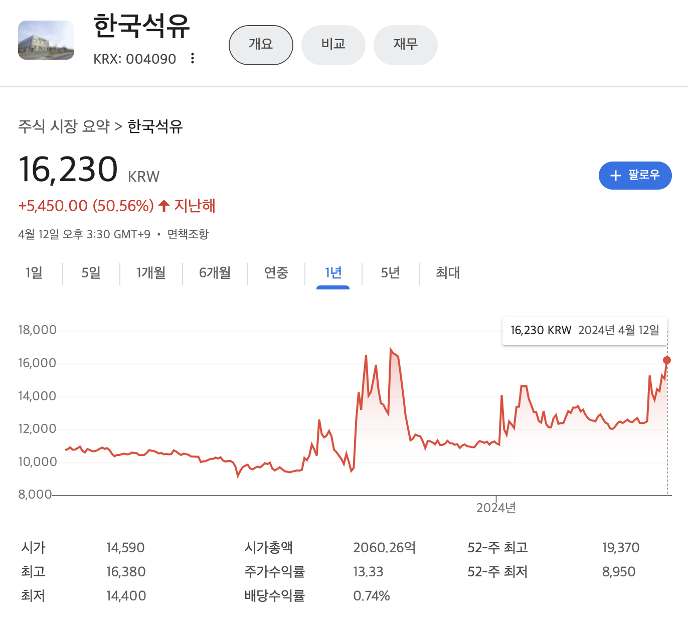한국석유(004090) 주가 및 뉴스 - Google Finance