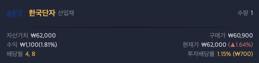 한국단자 비교대상 종목의 배당금 포스팅 입니다.