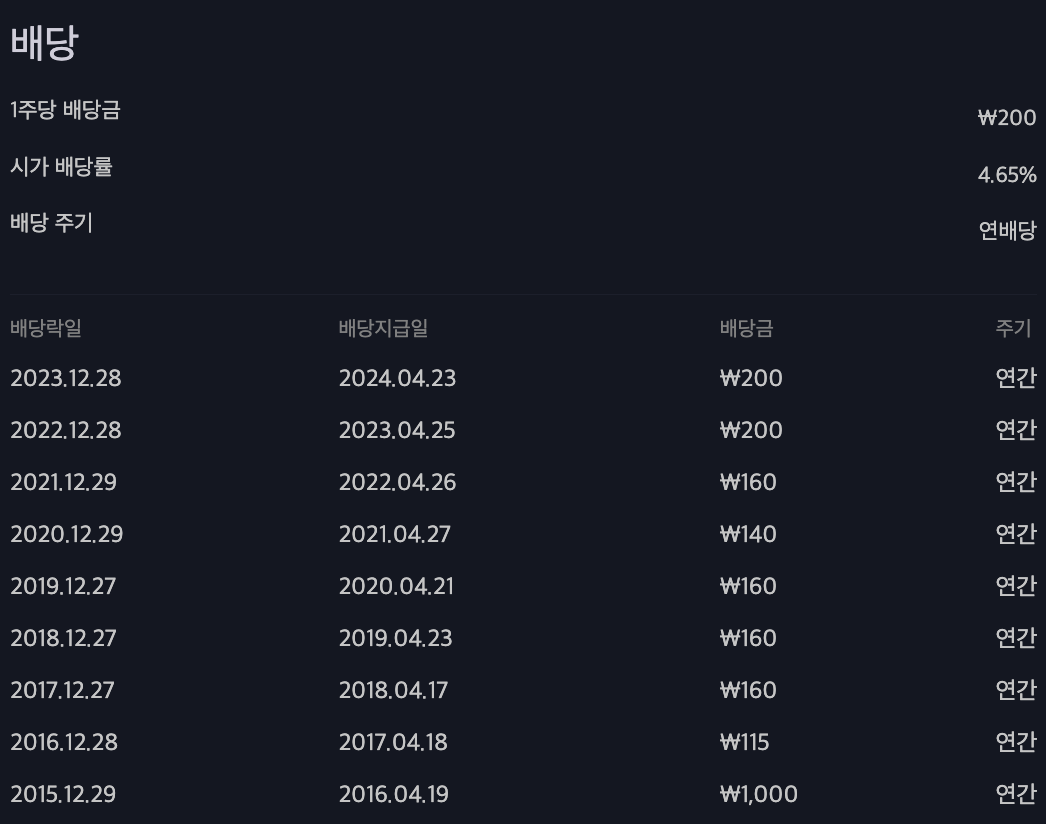하단의 이미지는 배당금액만 참고하시고 배당기준일은 직접 확인하시는 것이 정확합니다.