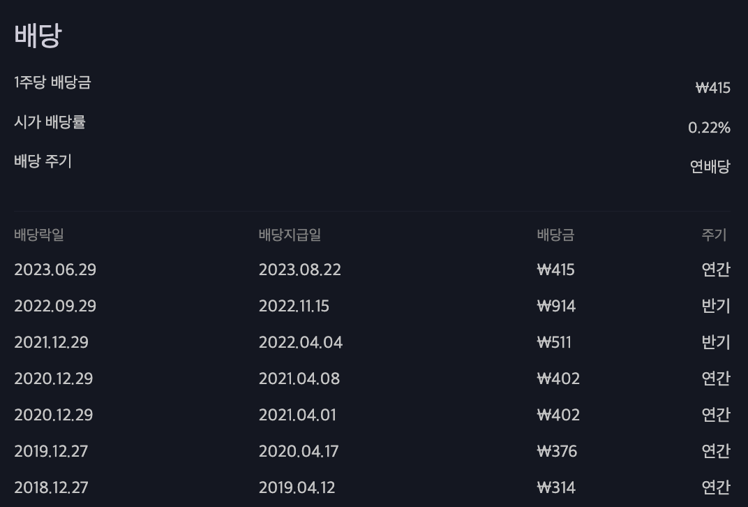 하단의 이미지는 배당금액만 참고하시고 배당기준일은 직접 확인하시는 것이 정확합니다.