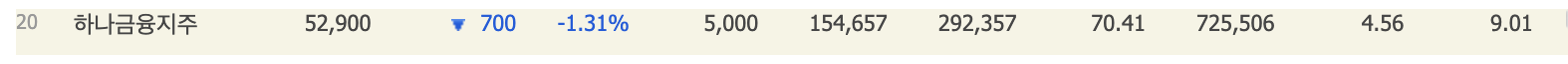 하나금융지주는 코스피에 상장되어 있으며 시가총액 20위의 기업입니다.(2024년 4월기준)