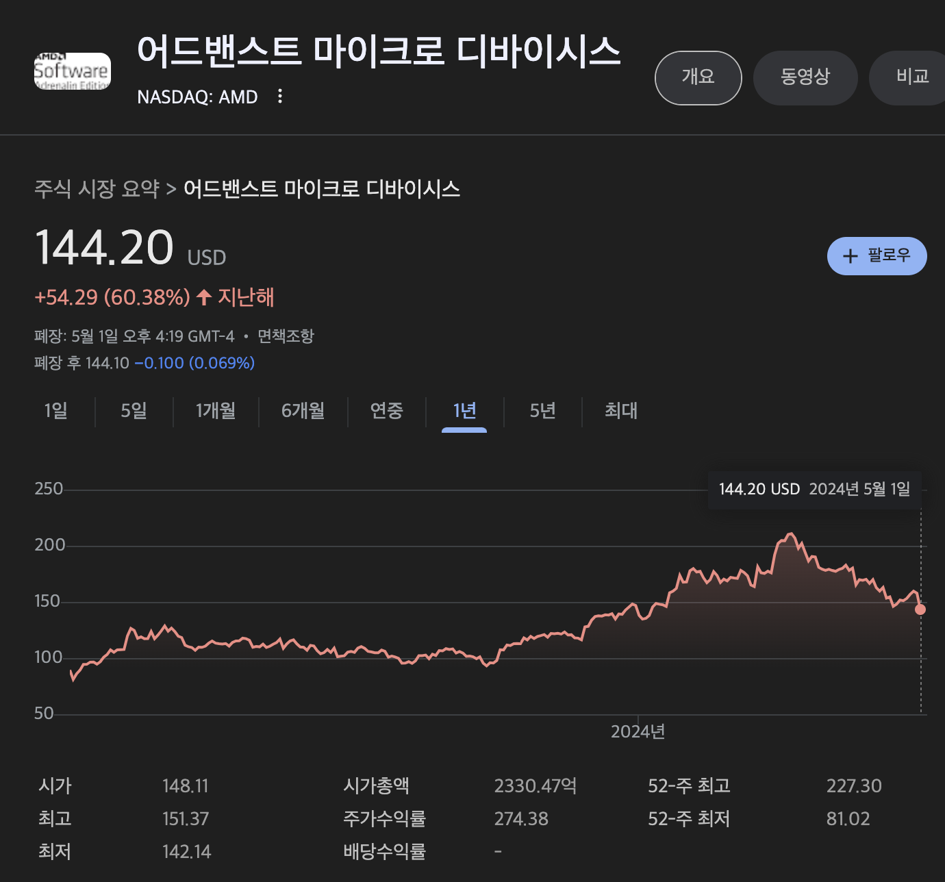 - AMD 주가