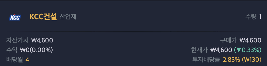 KCC건설 업종(자본재) 종목의 배당금 포스팅 입니다.
