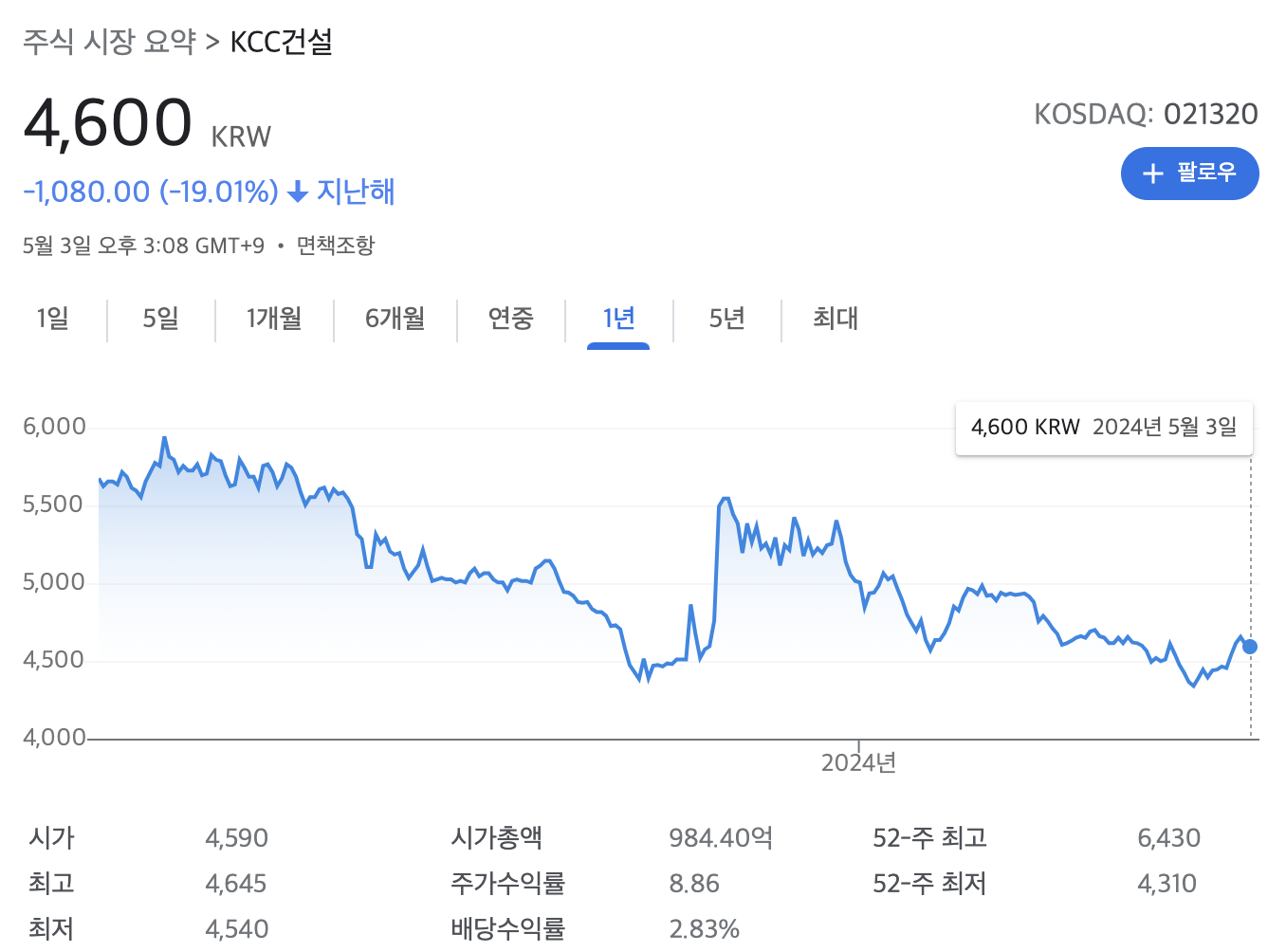 KCC건설 네이버증권, 구글금융