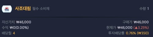 사조대림 비교대상 종목의 배당금 포스팅 입니다.