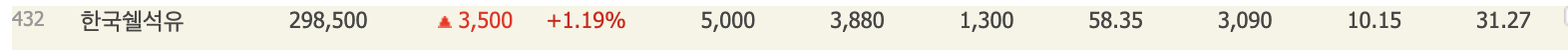 한국쉘석유 (출처 네이버증권)