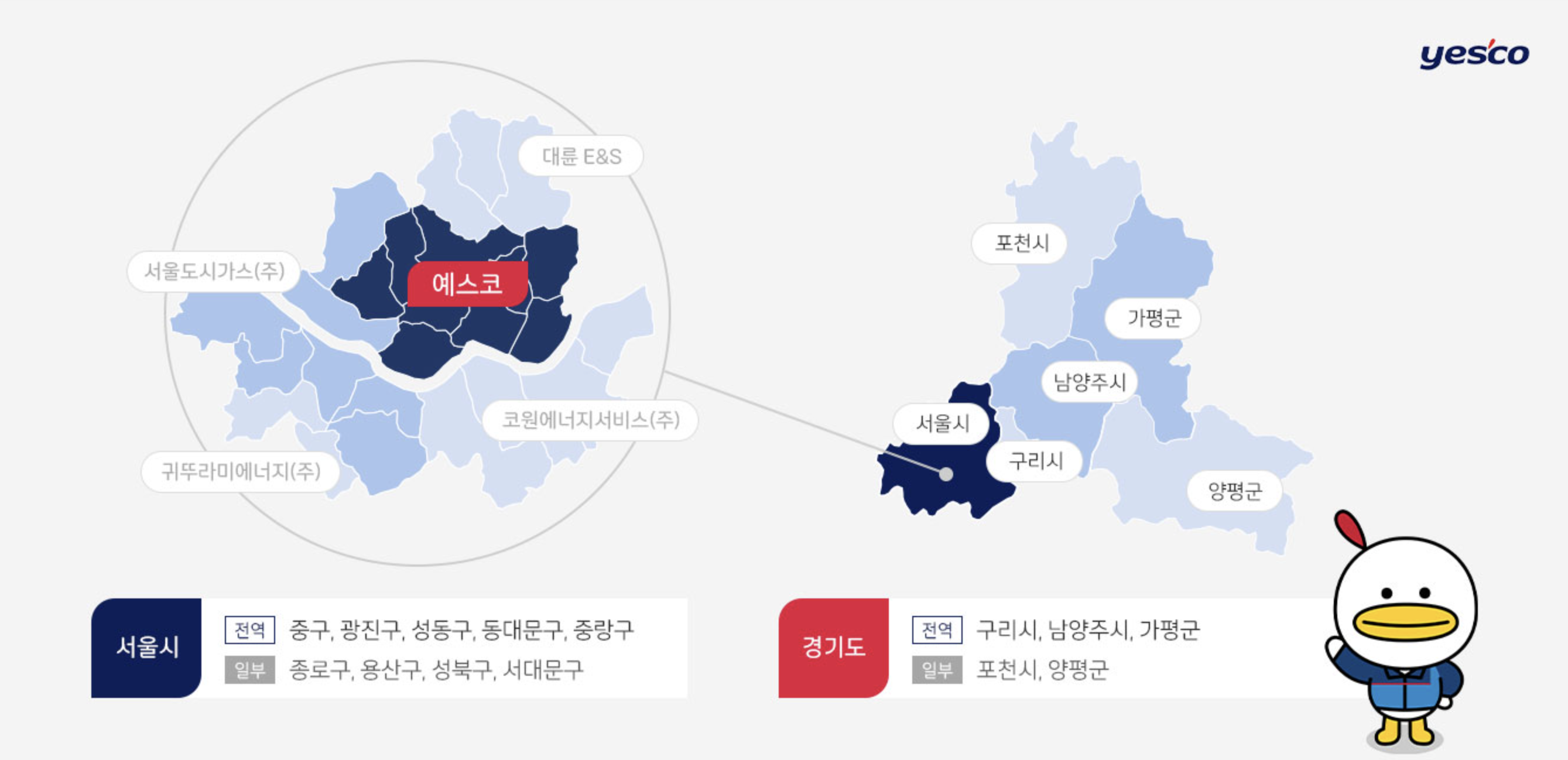 예스코그룹은 LS그룹 내에 소그룹 형태로 존재하며, 주요 사업은 도시가스 공급입니다. 예스코그룹은 서울특별시 동북부 권역의 도시가스 공업 업체인 예스코를 중심으로 활동하고 있습니다. 예스코홀딩스는 LS그룹 내에서 독립적인 역활을 수행하며 LS그룹 오너인 구태희.구두회 명예회장 일가가 지분 40%가량을 보유하고 있습니다.