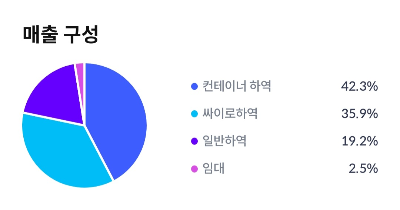 선광은 컨테이너 하역 42.3%, 싸이로하역 35.9%, 일반하역 19.2%, 임대 2.5%의 매출 구성을 하고 있습니다.
