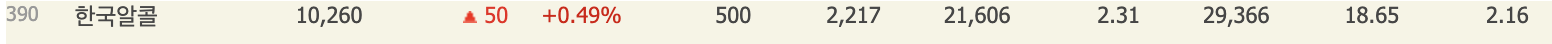 한국알콜의 비교대상입니다.