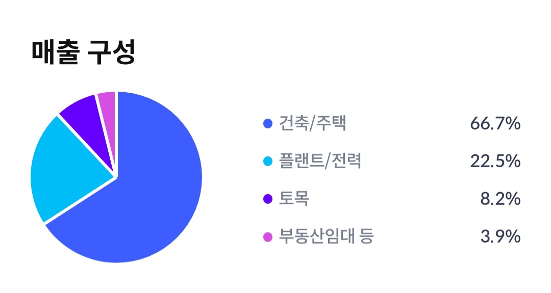 매출 구성의 50%로 이상은 건축/주택입니다.