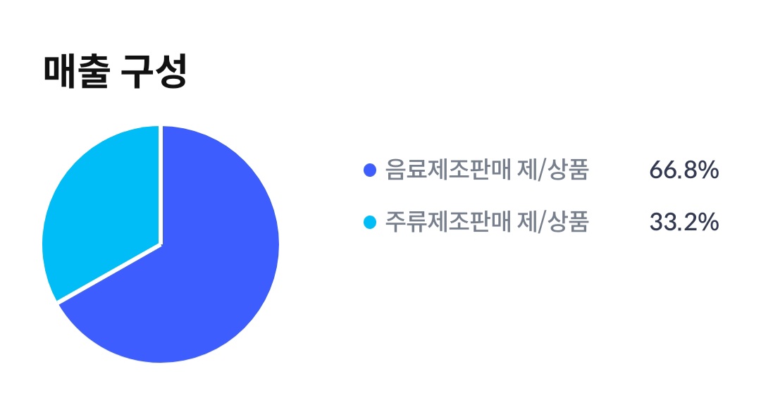 매출 구성은 음료제조판매 제/상품 66.8%, 주류제조판매 제/상품 33.2%로 구성되어 있습니다.
