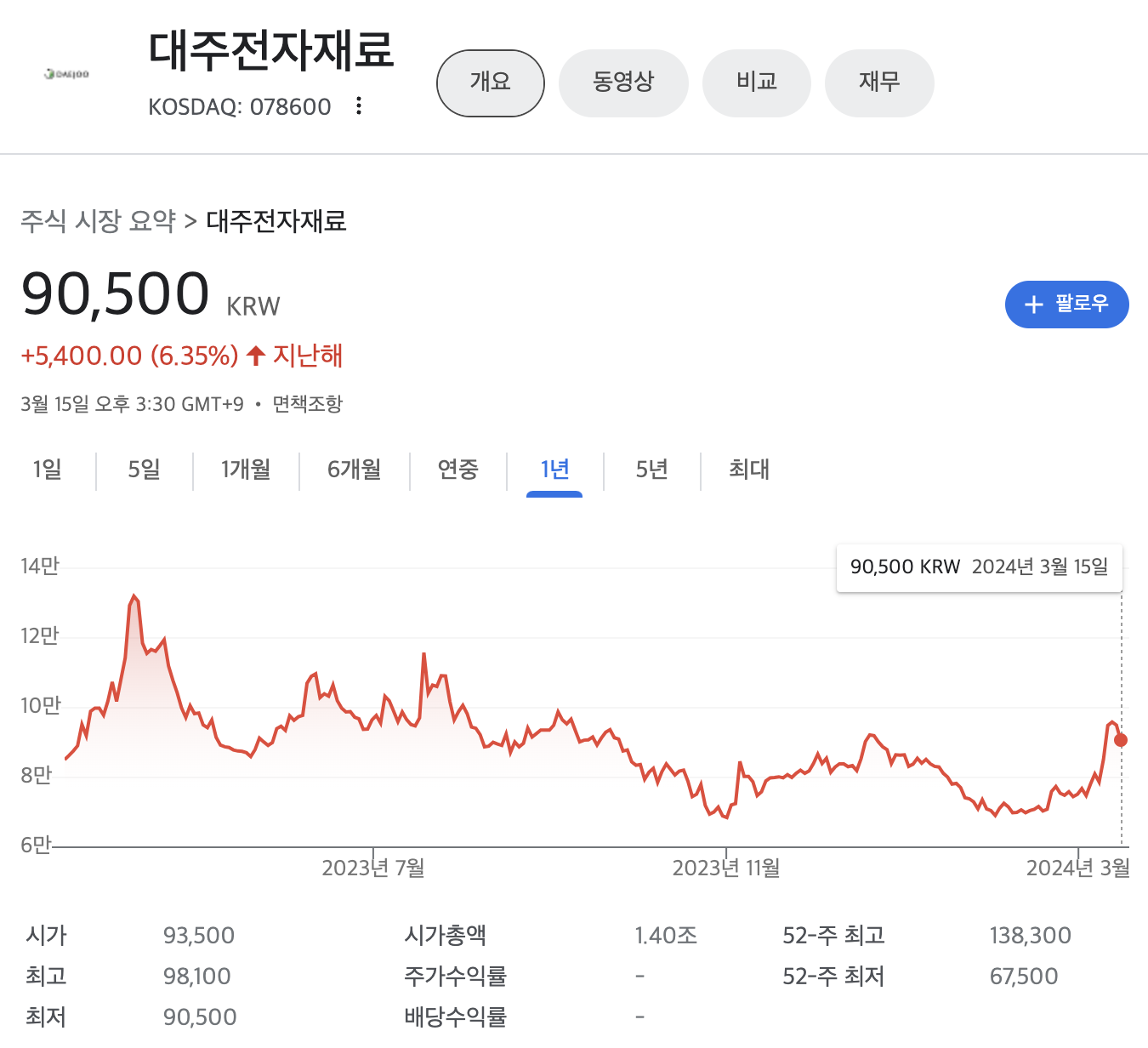 대주전자재료(078600) 주가 및 뉴스 - Google Finance