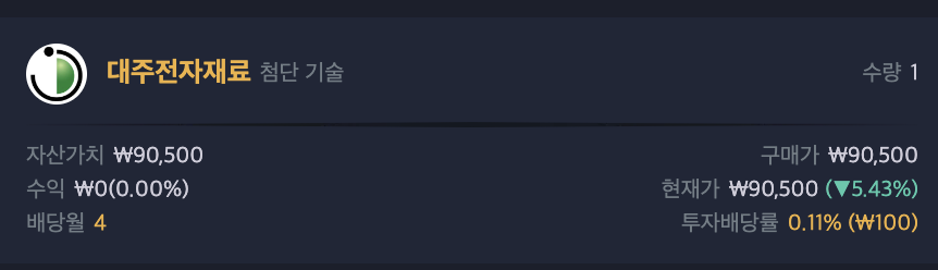 대주전자재료 비교대상 종목의 배당금 포스팅 입니다.