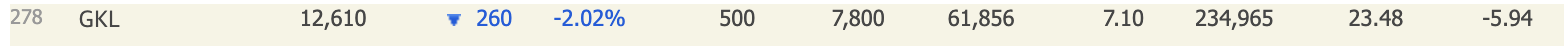 GKL은 코스피에 상장되어 있으며 시가총액 278위 기업입니다. (2024년 2월 기준)