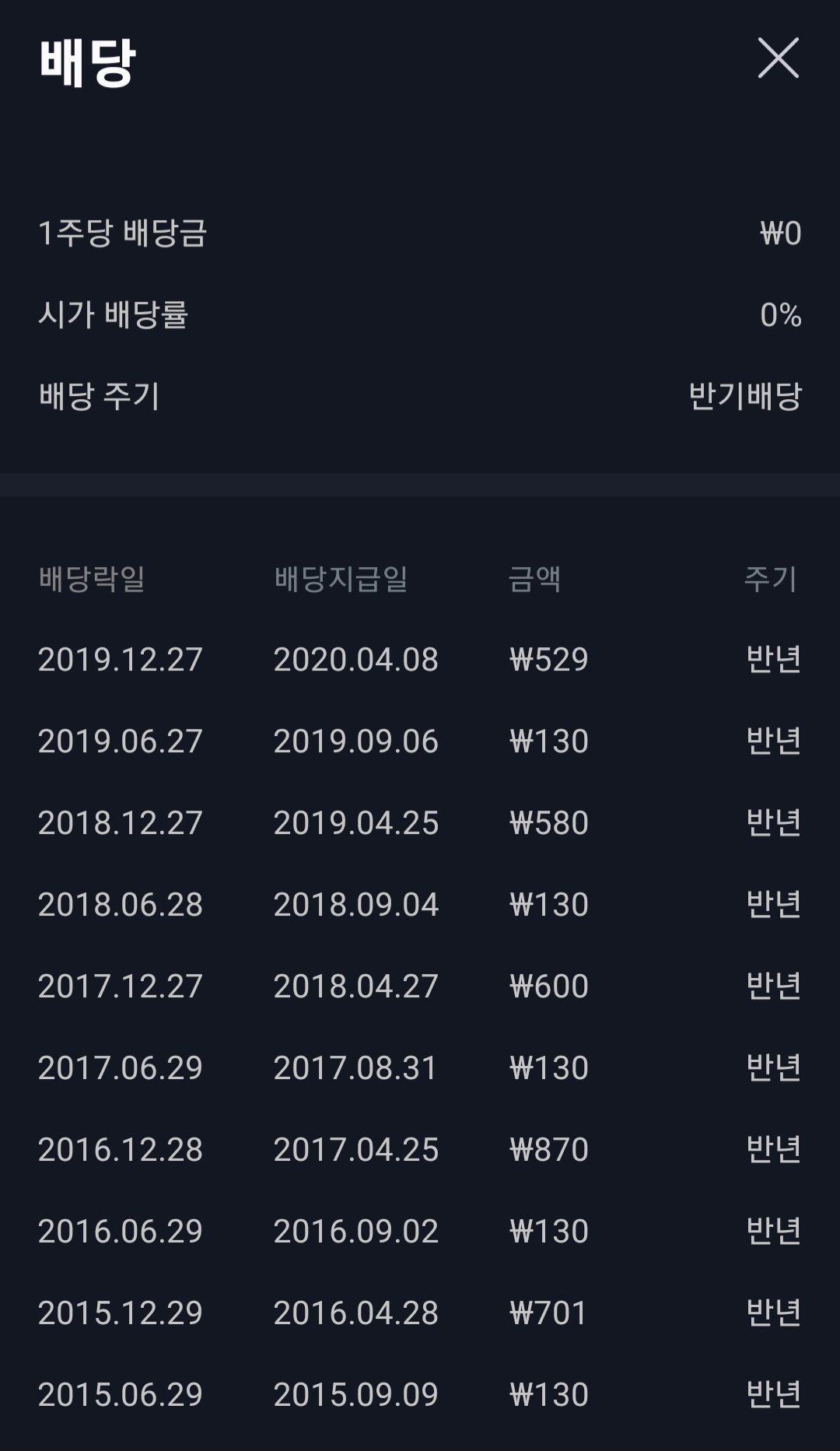 배당월은 4월, 9월이었습니다.