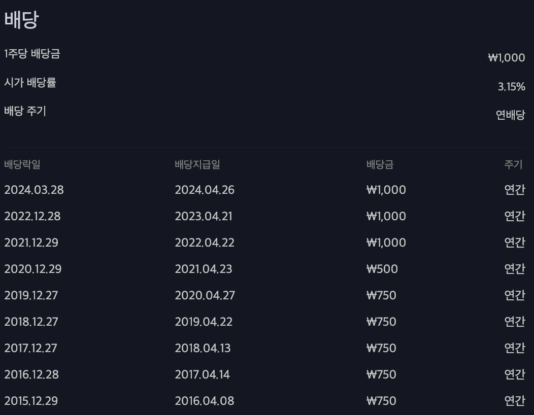 하단의 이미지는 배당금액만 참고하시고 배당기준일은 직접 확인하시는 것이 정확합니다.