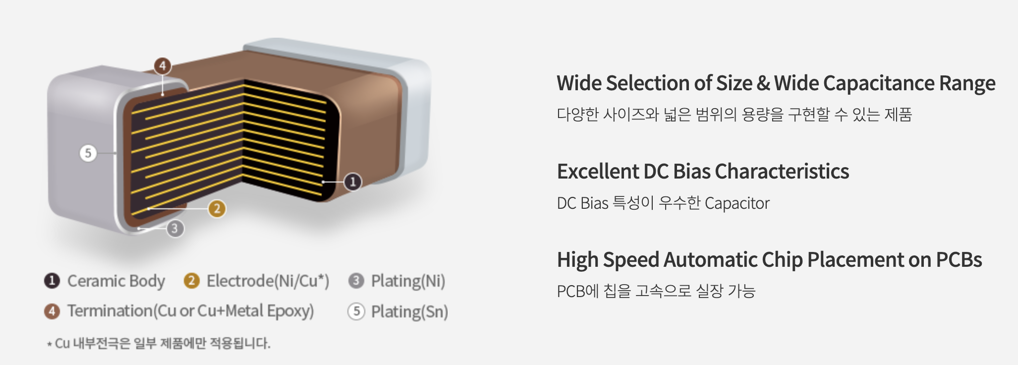 - MLCC 적용분야 : 스마트폰, PC, HDD/SSD 보드, 태블릿, Display, 게임기, DC-DC Converter, 전장용 애플리케이션