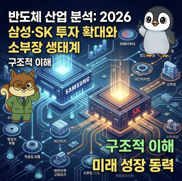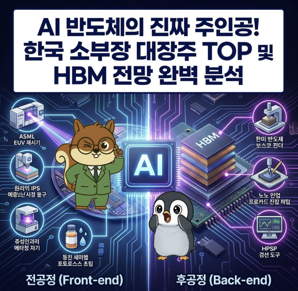 현재 글로벌 반도체 산업은 인공지능(AI) 기술의 급격한 발전과 함께 구조적인 변화를 맞이하고 있습니다. 특히 고대역폭 메모리(HBM)와 초미세 공정의 중요성이 커지면서, 이를 가능하게 하는 소재·부품·장비(소부장) 기업들의 기술적 역할이 데이터로 증명되고 있습니다. 본 글에서는 객관적인 시장 지표를 바탕으로 한국 소부장 산업의 현황을 정리합니다.1. 반도체 소부장의 개념과 산업 내 위치반도체 산업은 크게 설계(팹리스), 생산(파운드리), 메모리 제조(IDM)로 나뉘지만, 이 모든 과정을 실질적으로 구동하는 것은 소부장입니다.영속성(Persistence): 반도체 공정이 미세화될수록 기존 장비로는 한계가 발생하며, 이를 극복하기 위한 새로운 소재와 장비는 산업이 존재하는 한 필수적인 수요를 형성합니다...
