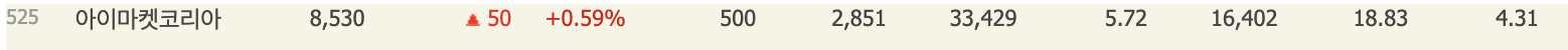아미마켓코리아는 코스피에 상장되어 있으며 시가총액 525위의 기업입니다.(2024년 5월기준)